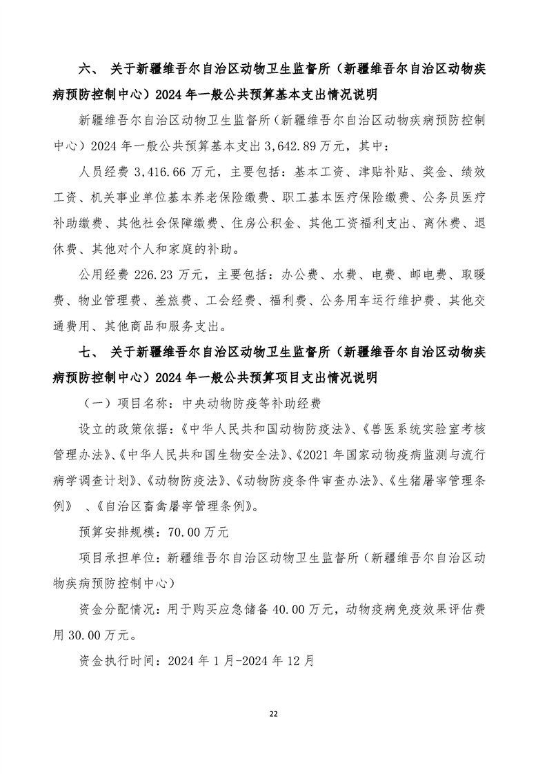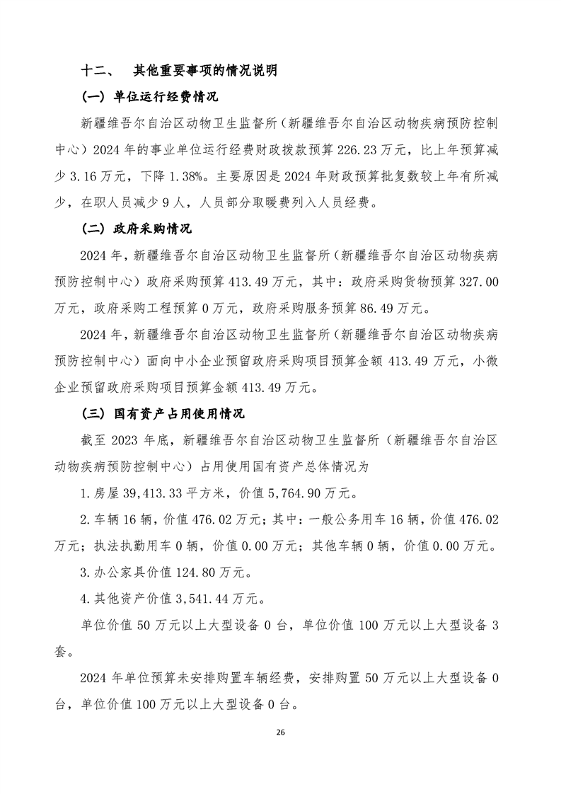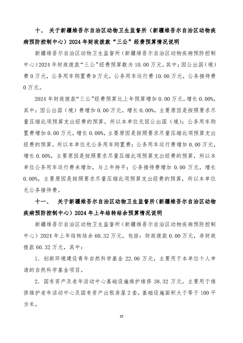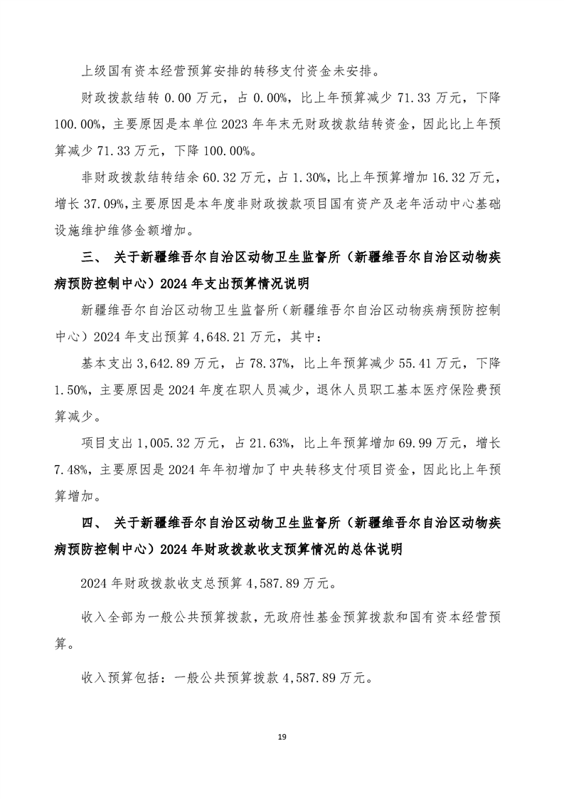 新疆维吾尔自治区动物卫生监督所(新疆维吾尔自治区动物疾病预防控制中心)2024年单位预算公开 -银河官网