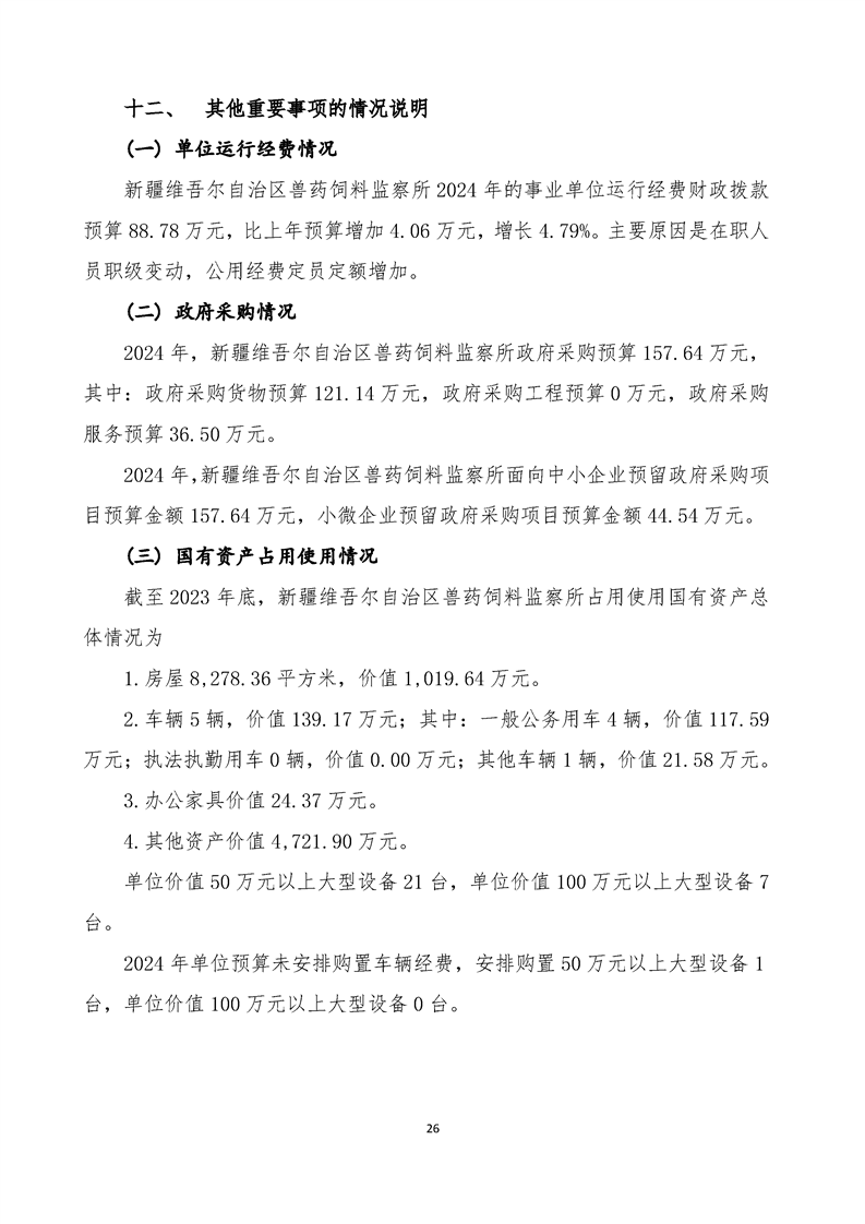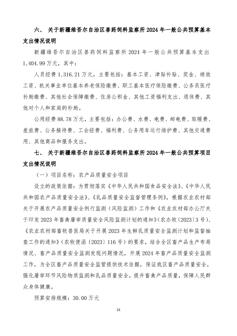 新疆维吾尔自治区兽药饲料监察所2024年单位预算公开 -银河官网