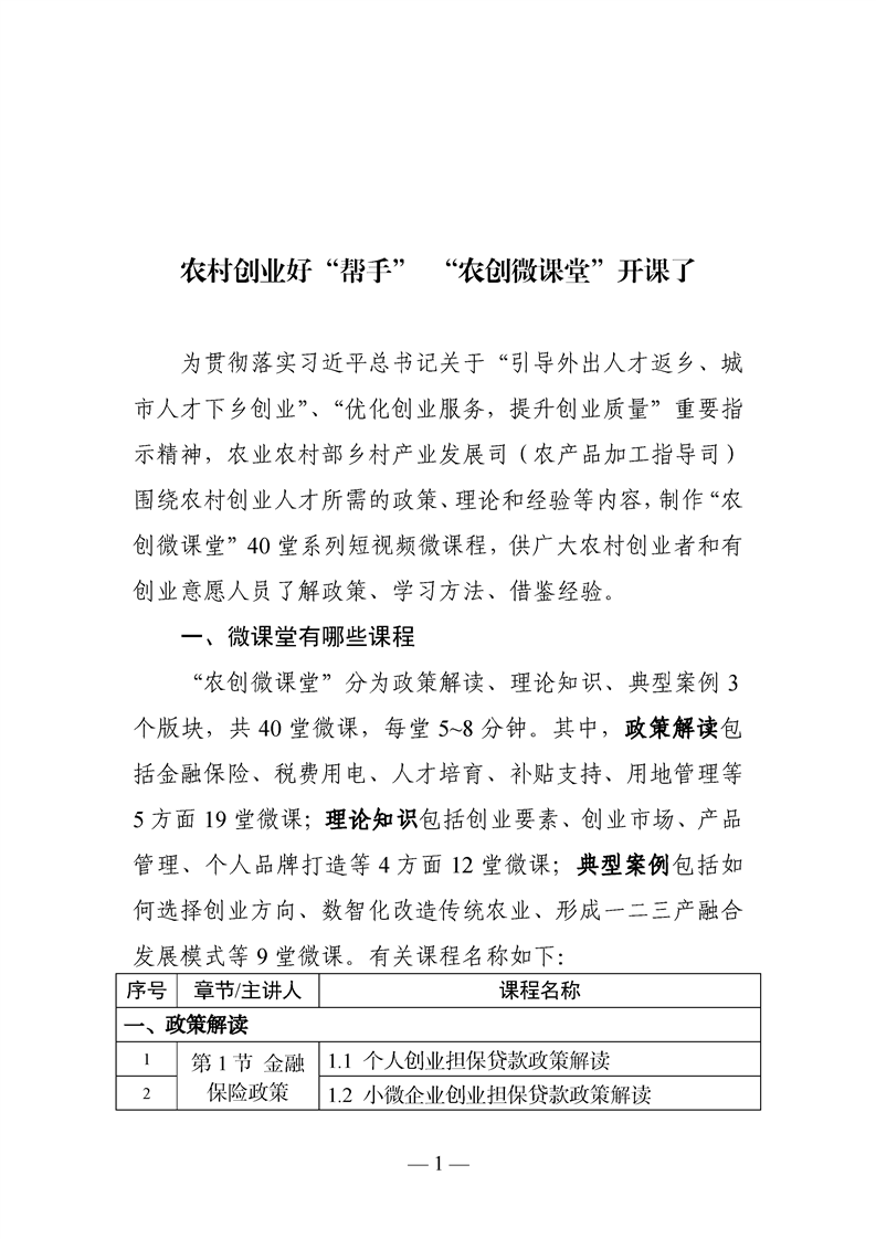 关于开设“农创微课堂”优化农村创业服务信息 -银河官网